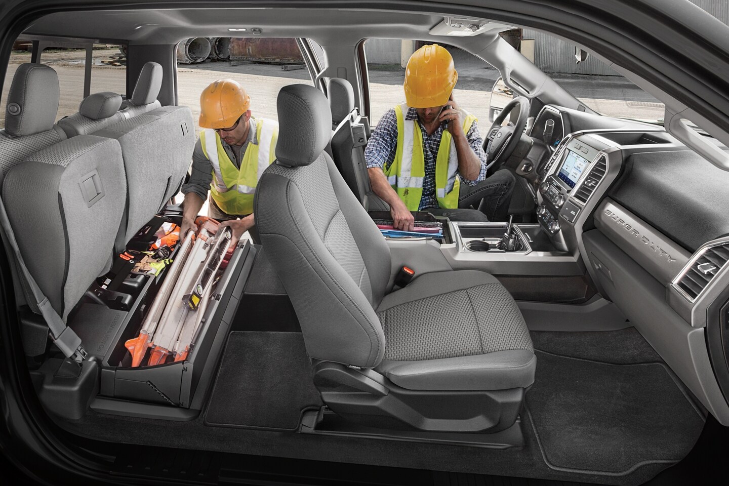 To help keep you comfortable, the Ford Chassis Cab has cloth seating with available heated seats. Lariat trims come with premium leather power-adjustable seating with available heated and ventilated front seats, automatic dual-zone electronic temperature control, and a leather-wrapped steering wheel.