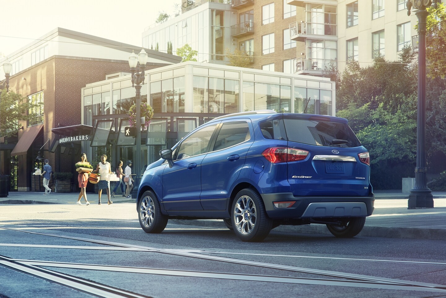 The base trim offers basic amenities, such as Ford's Sync infotainment system with a 4G LTE Wi-Fi hot spot and a 4.2-inch display. You also get air conditioning and cloth upholstery. If you upgrade to the SE trim, your EcoSport will be equipped with the Sync 3 system, which includes Apple CarPlay and Android Auto compatibility, an 8-inch display, and SiriusXM. Other added features offered with this trim are electronic climate control, heated front seats, intelligent access with push-button start, and a leather-wrapped steering wheel and shift knob.