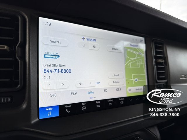 Scores 19 Highway MPG and 17 City MPG! This Ford Bronco delivers a Twin Turbo Regular Unleaded V-6 2.7 L/164 engine powering this Automatic transmission. WHEELS: 17 BLACK HIGH GLOSS-PAINTED ALUMINUM (64X) -inc: warm alloy beauty ring, beadlock capable, TRANSMISSION: 10-SPEED AUTOMATIC -inc: remote start system, trail control, trail turn assist and trail one-pedal driving, 4.46 Axle Ratio, Rear HVAC, SASQUATCH PACKAGE -inc: Wheels: 17 Carbonized Gray Painted Aluminum, High Clearance Fender Flares, High Clearance Suspension, 4.7 Final Drive Ratio, electronic-locking front and rear axle, Tires: LT315/70R17 Rugged-Terrain, Position-Sensitive Bilstein Shock Absorbers.* This Ford Bronco Features the Following Options *EQUIPMENT GROUP 334A LUX PACKAGE -inc: Heated Steering Wheel, Rear Parking Sensors, Power Outlet - Back Side of Center Floor Console, Dr & Pass Illuminated Sliding Visor Vanity Mirrors, Evasive Steering Assist, Information on Demand Panel, Dual-Zone Electronic Automatic Temperature Control, air conditioning, Ford Co-Pilot360, Enables compatibility w/FordPass performance app w/off-road navigation, Auto High-Beam Headlamps, Pre-Collision Assist w/Automatic Emergency Braking, pedestrian detection, forward collision warning and dynamic brake support, Blind Spot Information System (BLIS), Cross-Traffic Alert, Rear View Camera, backup assist grid lines, Lane-Keeping System, Lane-Keeping Alert, Lane-Keeping Aid and Driver Alert, Ambient Footwell Lighting, 2-Door Intelligent Access w/Lock/Unlock, Intelligent Access will also lock/unlock the swing gate, Dual Smart Charging USB Ports, Front Row Heated Seats, Adaptive Cruise Control, Radio: B&O Sound System by Bang & Olufsen, 12 speakers includi, ENGINE: 2.7L ECOBOOST V6 -inc: GVWR: 6,180 lbs, ENGINE BLOCK HEATER, DOOR STORAGE BAGS -inc: Custom accessory, pre-installed, The door storage bags are unique to the number of doors, On-vehicle door storage is 4-door only, BODY COLOR-PAINTED HARD TOP -inc: Hard Top Sound Deadening Headliner, Rear-Window Defroster & Washer, Wireless Phone Connectivity, Wheels: 17 Carbonized Gray-Painted Aluminum, Vinyl/Rubber Floor Trim, Variable Intermittent Wipers, Upfitter Switches.* Visit Us Today *Come in for a quick visit at Romeo Ford of Kingston, 128 Route 28, Kingston, NY 12401 to claim your Ford Bronco!