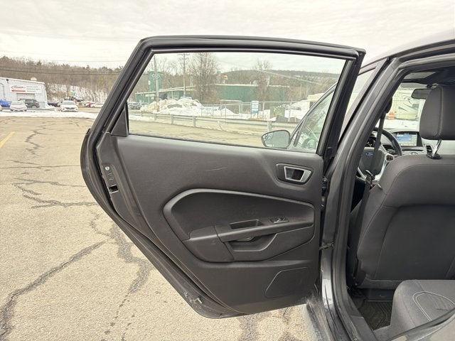Romeo Ford of Kingston proudly presents this 2018 Ford Fiesta with Equipment Group 400A, 4-Wheel Disc Brakes, 8 Speakers, ABS brakes, Air Conditioning, Alloy wheels, AM/FM radio: SiriusXM, AppLink/Apple CarPlay and Android Auto, Automatic temperature control, Brake assist, Bumpers: body-color, CD player, Compass, Delay-off headlights, Driver door bin, Driver vanity mirror, Dual front impact airbags, Dual front side impact airbags, Electronic Stability Control, Emergency communication system: SYNC 3 911 Assist, Exterior Parking Camera Rear, Front anti-roll bar, Front Bucket Seats, Front Center Armrest, Front fog lights, Front reading lights, Front wheel independent suspension, Fully automatic headlights, Illuminated entry, Knee airbag, Leather Shift Knob, Low tire pressure warning, Occupant sensing airbag, Outside temperature display, Overhead airbag, Overhead console, Passenger door bin, Passenger vanity mirror, Power door mirrors, Power steering, Power windows, Radio data system, Radio: HD Sony AM/FM Stereo/CD Player/MP3 Capable, Rear anti-roll bar, Rear window defroster, Rear window wiper, Red Brake Calipers, Remote keyless entry, Security system, Speed control, Speed-sensing steering, Split folding rear seat, Spoiler, Steering wheel mounted audio controls, SYNC 3 Communications & Entertainment System, Tachometer, Telescoping steering wheel, Tilt steering wheel, Traction control, Trip computer, Turn signal indicator mirrors, Unique Cloth Front Sport Bucket Seats, Variably intermittent wipers, Wheels: 17 Premium Painted Ebony Black Aluminum, and Wheels: 17 Rado Gray Painted.