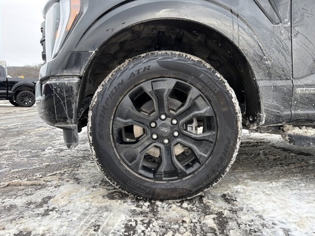 Black 2023 Ford F-150 XLT 4WD 10-Speed Automatic 3.5L PowerBoost Full-Hybrid V6 ABS brakes, Alloy wheels, Compass, Electronic Stability Control, Heated door mirrors, Illuminated entry, Low tire pressure warning, Remote keyless entry, Traction control.