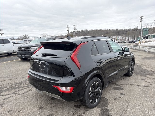 Romeo Ford of Kingston proudly presents this 2024 Kia Niro EV with Wind Preserve Package (Heat Pump, Heated Rear Seats, and Heated Steering Wheel), 10.65 Axle Ratio, 2-Level Cargo Mat, 4-Wheel Disc Brakes, 6 Speakers, 7J x 17 Alloy Wheels, ABS brakes, Air Conditioning, Alloy wheels, AM/FM radio: SiriusXM, Apple CarPlay & Android Auto, Auto High-beam Headlights, Automatic temperature control, Brake assist, Bumpers: body-color, Carpet Floor Mats, Cloth & Vegan Leather-Trimmed Seats, Delay-off headlights, Driver door bin, Driver vanity mirror, Dual front impact airbags, Dual front side impact airbags, Electronic Stability Control, Emergency communication system: Kia Connect (includes 1 year free trial), Exterior Parking Camera Rear, Four wheel independent suspension, Front anti-roll bar, Front Bucket Seats, Front Center Armrest, Front dual zone A/C, Front reading lights, Fully automatic headlights, Heated door mirrors, Heated Front Bucket Seats (3-Steps), Heated front seats, Illuminated entry, Knee airbag, Low tire pressure warning, Navigation System, Occupant sensing airbag, Outside temperature display, Overhead airbag, Overhead console, Panic alarm, Passenger door bin, Passenger vanity mirror, Power door mirrors, Power driver seat, Power Liftgate, Power steering, Power windows, Radio: 6-Speaker Audio System, Rain sensing wipers, Rear anti-roll bar, Rear Bumper Applique, Rear seat center armrest, Rear window defroster, Rear window wiper, Remote keyless entry, Security system, Speed control, Speed-sensing steering, Split folding rear seat, Spoiler, Steering wheel mounted audio controls, Telescoping steering wheel, Tilt steering wheel, Traction control, Trip computer, Turn signal indicator mirrors, and Variably intermittent wipers.